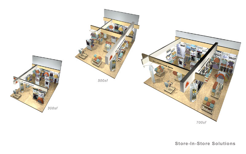 Contrairement au 21 mercer street (lire par ailleurs), Nike a revisité son « store-in-store ». Existant sous 3 formats, il peut facilement s’adapter en fonction de la surface et du potentiel de chaque site.