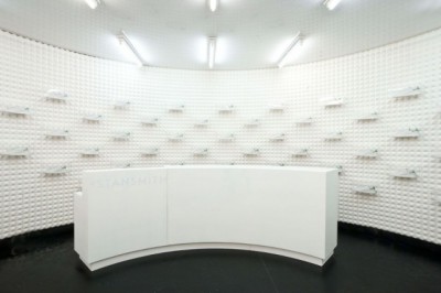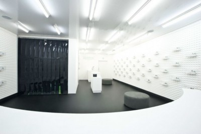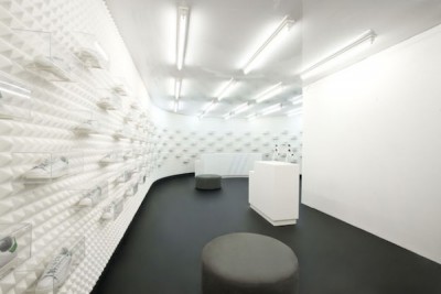 On est dans le monde de la Stan Smith. Vert et blanc. D’abord un long couloir vert lumineux et ensuite un écrin blanc et pur.