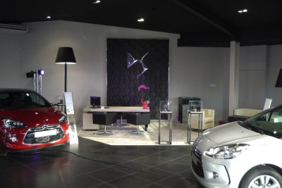 Pour cela, sur les 180 mètres carrés de lieu, l’exposition des 4 modèles DS actuelle est élégante. Mais, la différence vient aussi par l’installation d’un salon d’attente et un mur d’accessoires.